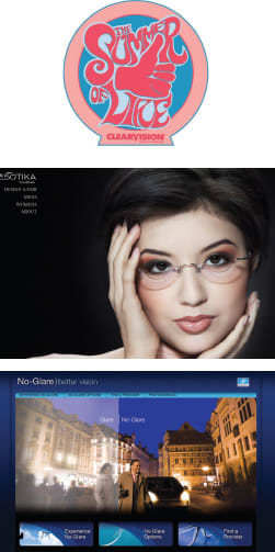 From top: ClearVision Optical recently kicked off its “Summer of Like” campaign; Esotika's new website, Esotika.com; ECPs can learn about the benefits of Essilor's No-Glare lenses at No-Glare.com
