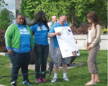 Team Brooklyn educating passersby on the importance of UVA/UVA protection