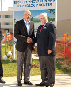 ![]() Essilor recently broke ground on its new, world-class Innovation and Technology Center. Based in Farmer's Branch, Texas, the new 43,000 square-foot facility will house both Essilor's research and development and engineering resources and equipment under one roof. The facility is scheduled to open in April 2012. ![]() Essilor of America president and CEO John Carrier (l) with City of Farmer's Branch, Texas mayor Bill Glancy (r) |