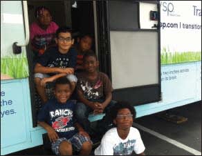 San Diego's Elementary Institute of Science students outside the Eyenstein Mobile Eye Clinic on a recent tour