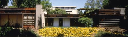 Above: Eyeglass style Rialto by l.a.Eyeworks. Below, architectural inspiration—Schindler House (designed by R.M. Schindler in 1922) located in West Hollywood, Calif. Credit: MAK Center/Photo by Gerald Zugman.