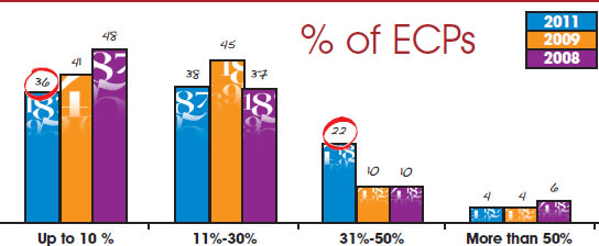 ■ 57%: the percentage of ECPs that say they meet with frame reps on a monthly basis. Only 10 percent reported that they meet with repstwice a month.