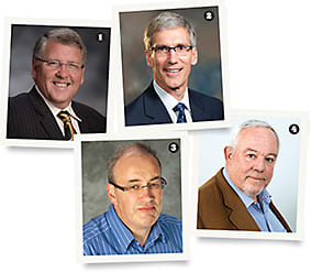 The National Federation of Opticianry’s newly elected officials (clockwise from top): Sheldon O’Guinn, Robert J. Russo, Sheri Red Shirt, and Kimberly Strickler