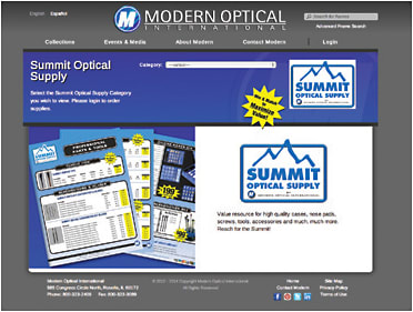 Modern Optical International has rolled out an enhancement to its website, enabling users to order from its Summit Optical Supply division. For the first time, users have direct access to Modern’s extensive selection of eyewear-related products on the website. Visitors can view high-quality imagery along with important product information and, once logged in, they can order via the Summit Optical Supply page or Modern Optical’s popular EZ ordering tool.