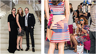 Left: Marchon’s Leslie Muller (l) and Mark Ginsberg (r) with VSP’s Kate Renwick-Espinosa (c) at the launch event.