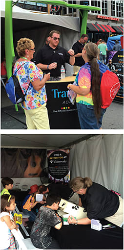 Representatives from Transitions Optical and VisionWorks perform vision screenings for visitors to the CMA Music Festival in Nashville, and hand out Transitions Signature trial decals