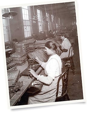 The picture to the left, snapped around 1920 at the AO factory in Southbridge, MA, appears to show the trial lens sets being assembled.