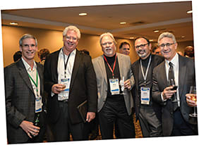Execs enjoying the opening reception include (l to r) Dave Cole, Larry Clarke, Kevin Rupp, David Milan, and Bob Colucci