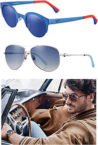 • Men’s lenses get flashy with mirrored finishes that go beyond gold and silver into bright pops of color including orange, green, and blue.