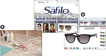 1. Izod’s personalization program P.O.P.; 2. Nikevision’s sport-specific eyewear interactive shopping guide with Marchon; 3. Silhouette walks patients through customization with a banner; 4. REM’s Converse customization site
