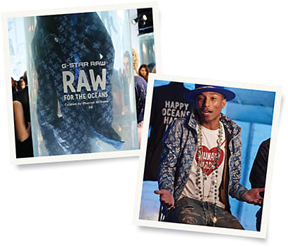 G-Star Raw launched its Raw For The Oceans (RFTO) collection in New York, in an event with Pharrell Williams. The collection was presented in an abstract underwater world dressed with ocean projections and installations. Marchon produces G-Star Raw eyewear.