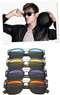 The model is available in several color combinations: crystal/black, petrol blue/clear gray, champagne/light brown, blue/black, burgundy/dark tortoise shell, purple/black, and black/dark tortoise shell. The model will be sold with a special case, signed by Neymar Jr.