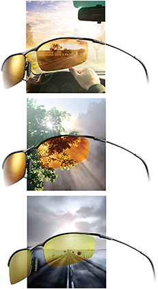 The lenses have a high-efficiency constant polarizer to block blinding glare in all driving conditions.