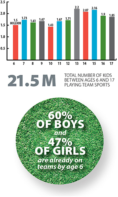 NUMBER OF KIDS WHO PLAY ON A TEAM BY AGE