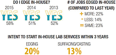 MATERIALS AND EXTRAS: In keeping with the national trend, polycarbonate is the most-used lens material here (cited as such by 55% of ECPs). However, that number is down from last year, most likely due to the increase in use of Trivex and high-index. Citation of plastic as the “go-to” material remained steady at 16%. Also remaining true to the national trend, AR tops the “extras” list here, with 80% of ECPs citing it as their most popular add-on. The South did better with sales of photochromics and polarized lenses as well. After losing 15% in sales from 2013 to 2014, photochromics has yet to regain its footing, though sales did gain 1 percentage point over last year’s dreary 10%. Polarized also saw a slight jump, up 3%.