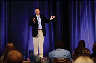 Blind activist, writer, and singer Tom Sullivan presented a motivational “Adventures in Darkness” keynote address.