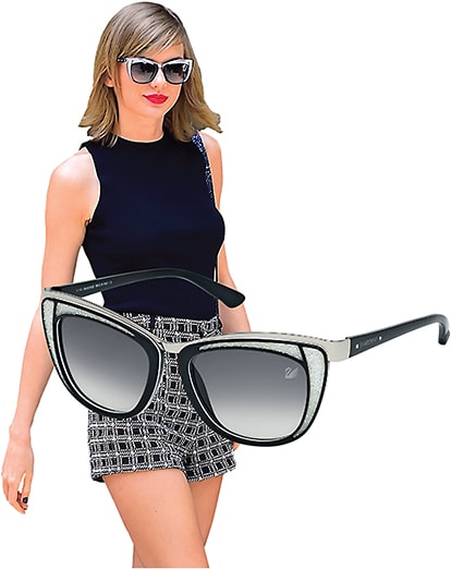 While she may be in the middle of “Bad Blood” with singer Katy Perry, singer and actress Taylor Swift, wearing Swarovski sunglasses (SK0061 style) in New York, is looking pretty cool about the whole thing with short shorts and sparkling sunnies.