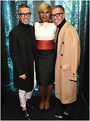 Dan (left) and Dean Caten flank singer Mary J. Blige at the opening