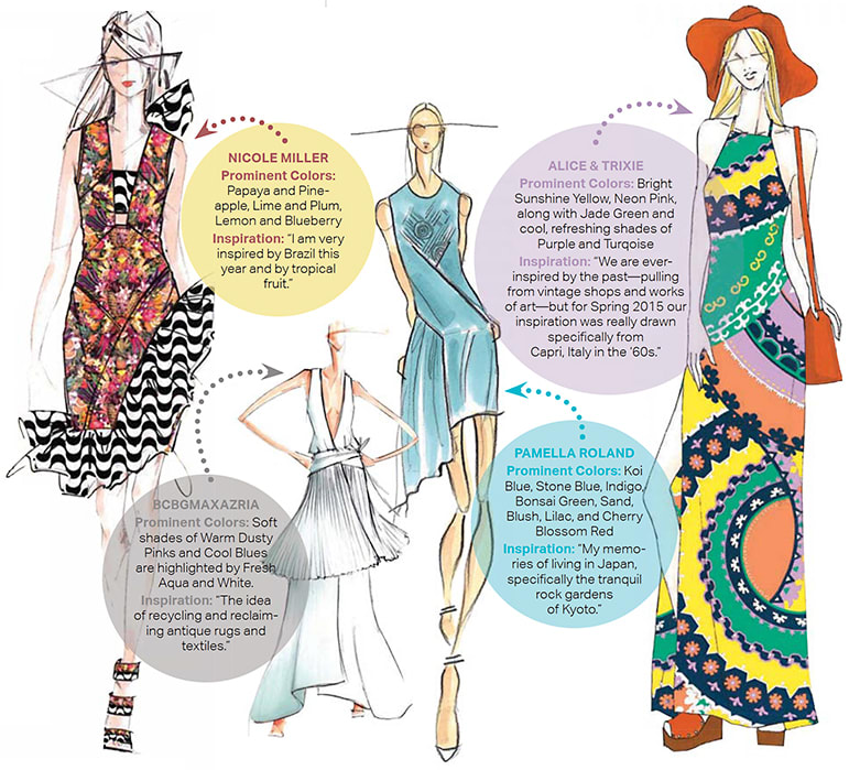 Seeing colors on the runway is key to understanding how hues impact the trends. Check out the video “Fashion Color Report Spring 2015” by Pantone.