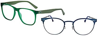Colorful frames: Marchon’s Lacoste style L2742 (l) and Ogi’s RedRose style Salvatore. Below, right: Silhouette’s Titan Contour
