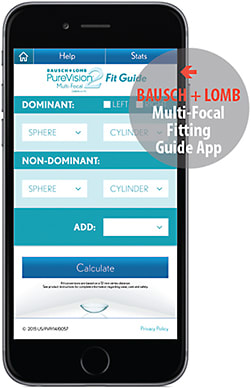 The PureVision2 Multi-Focal Fit Guide mobile app from Bausch + Lomb is designed to help ECPs successfully fit patients into PureVision2 for Presbyopia contact lenses. According to the company, fitting a multifocal contact lens on a patient takes 2.6 attempts on average. The new app streamlines the fitting process and reduces patient chair time and the need for follow-up visits.