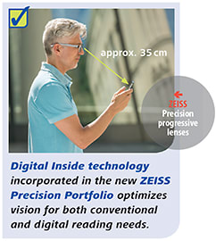 “Adults check their mobile phones an average of 100 times per day, and many spend up to nine hours per day viewing some kind of digital screen. This means that to provide outstanding all-day vision, progressive designs must help patients view their digital devices without strain.” — ULI KRAUSS, president and CEO of ZEISS Vision Care North America