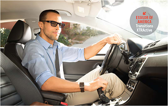 These lenses achieve a shade of darkness behind the windshield, have a hint of tint indoors to help protect eyes from fatigue, and get the darkest of all Transitions lenses outside.