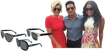 REM Eyewear launched the Jonathan Adler Eyewear collection with a giveaway of five frames to lucky fans on the entertainment show “Extra.” After the taping, “Extra” TV co-hosts geared up with their favorite styles from the new collection: (l to r) Charissa Thompson in the Jonathan Adler Positano frame, host Mario Lopez in the Jonathan Adler Santorini frame, and co-host Tracey Edmonds in the Jonathan Adler Capri frame.
