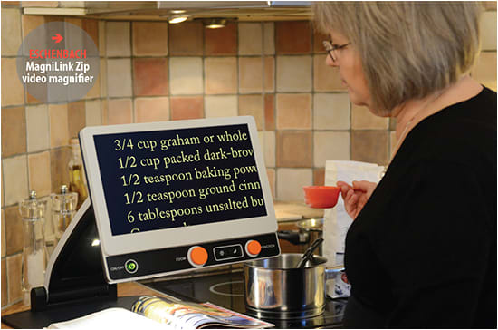 The MagniLink Zip video magnifier from Eschenbach is a full high-definition (FHD) system that can also be used to view distance objects—and folds down flat for easy transportation.