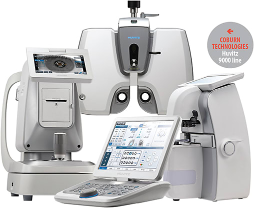 Coburn Technologies introduces the Huvitz 9000 series, a new line of diagnostic products. Its lensmeter features a Blue Light Hazard Measurement function, making it capable of measuring the blue light emitted from LED screens. The digital refractor has a tilting function for near chart tests, and the system’s auto refractor/keratometer has unique functions, including a Meibomian gland analysis, tear film breakup time measurement, and a contact lens fitting guide with color camera.