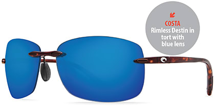 Costa’s rimless Rx collection features five styles and a variety of lens color options. Each of the rimless Rx styles will be available in Costa’s 580P color-enhancing lens technology, in either Trivex or new polycarbonate material, and feature Costa’s C-WALL oleophobic molecular bond and backside anti-reflective UV protection.