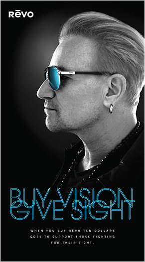 Glaucoma, a buildup of pressure in the eyeball, which can damage the optic nerve and lead to blindness if untreated, led Bono to develop the Buy Vision, Give Sight program with Revo. The goal: To drive $10 million to the fight to improve access to eye screening, prescription glasses, and eye health care in under-resourced communities around the world. The program aims to prevent vision impairment and blindness in more than 5 million people by 2020.