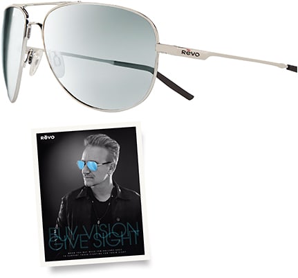 Credit: Sam Jones Photography Bono wears the new Revo Raconteur with Blue Water lenses for the “Buy Vision, Give Sight” campaign