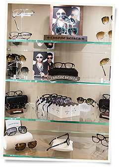 Chrome Hearts eyewear adorns a display case