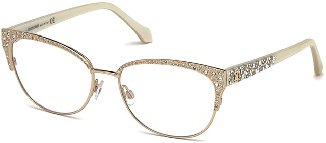 Glimmering gold + pure opulence with abundant crystals on Roberto Cavalli optical style RC5001 from Marcolin