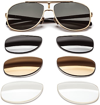 The luxurious design is complemented by the ZEISS Sunlens signature anti-reflective color palette, using the Bluez, Gold ET, Red, and Green AR coatings.