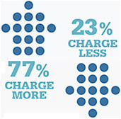 77% of our survey respondents report they are charging MORE this year than they did last year. This number is up from the 68% who responded similarly in our 2016 survey.