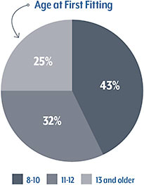 Unsurprisingly due to their sheer numbers, millennials rule. According to our survey respondents, patients aged 18-35 are fitted most often. And more than half of your peers are fitting patients younger than 12.