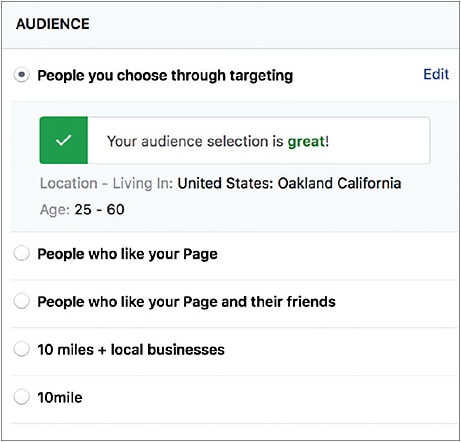 I started by targeting people aged 25 to 60 in my area. You can refine your targeting based on thousands of categories, including interests (glasses), technology (smart phone), and even shopping habits. It can get extremely specific. Now that you are your own marketing director, the job is to refine the options for better results each time.
