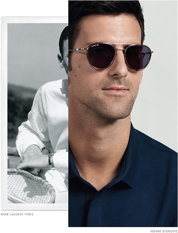 Lacoste eyewear from Marchon presents the first Novak Djokovic Eyewear Collection, an assortment of three exclusive sunglass styles (L102S, L601S, and L829S).