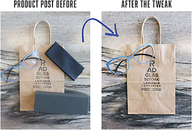 Improve this post by removing unnecessary elements to showcase your product and branding. Eliminate glare by removing demo lenses.
