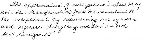When opening my first optical boutique in the '80s, I decided to bypass the traditional seating customarily used for more of a jewelry store concept. I sought out comfortable counter seating, built-in mirrors, and lit staged shelving. Over time, I saw that our concept was being copied all over the country!