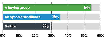 Healthy Eyes Advantage (formed via the merger of several buying groups) is the group most survey respondents belong to. For membership info, see chart, below.