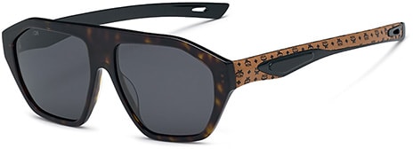 The sunglasses pair acetate frame fronts with acetate temples covered with leather and highlighted by injected details and the iconic MCM Visetos print.