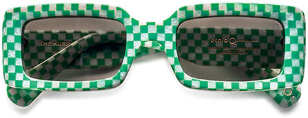 The brand’s 20th anniversary collection features four styles (Einstein, Kennedy, Kahlo, and Kubrick, pictured) in a chess-patterned acetate, paying homage to a similar launch released by the brand in 2006.