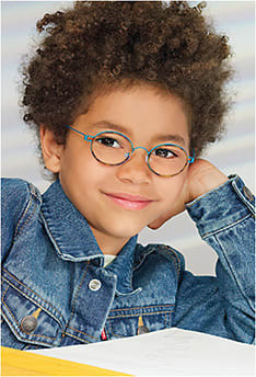 The Lindberg air titanium kid style Skye K25M/80 (pictured) features the brand’s signature spiral hinge, which, along with the titanium wire, adds a pop of vibrant color alongside the acetate inner rims.