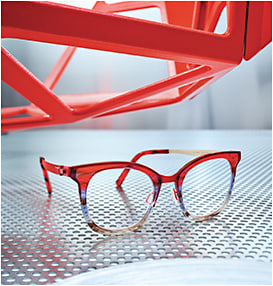 The (Morel)RED collection features ophthalmic styles—including the (Morel)RED Gabi style, pictured—and sunglasses all offered in a red design (with additional color options available).