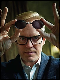◄ British eyewear maker Tom Davies was recently commissioned to create iconic eyewear styles for “The Matrix Resurrections” film. Here, Davies holds a limited-edition nose-clip sunglass style worn by Morpheus, played by actor Yahya Abdul-Mateen II.