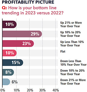 62% OF SURVEY RESPONDENTS IN THE SOUTHERN REGION SAY THEIR BOTTOM LINE IS TRENDING UP OVER 2022.