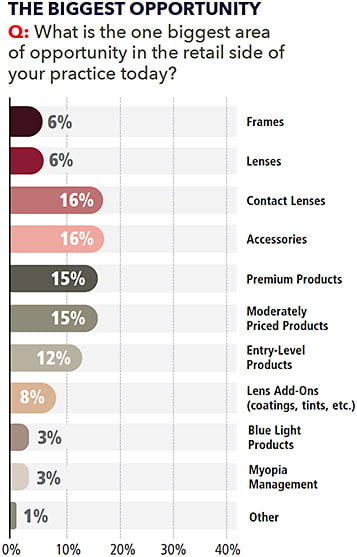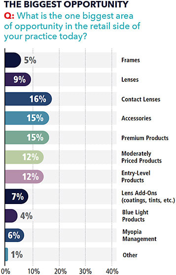 - Key Categories. The areas with the greatest potential? Survey respondents point to contact lenses, followed by premium products and accessories. As for here and now, respondents pinpoint moderately priced product as the area currently experiencing the greatest growth.